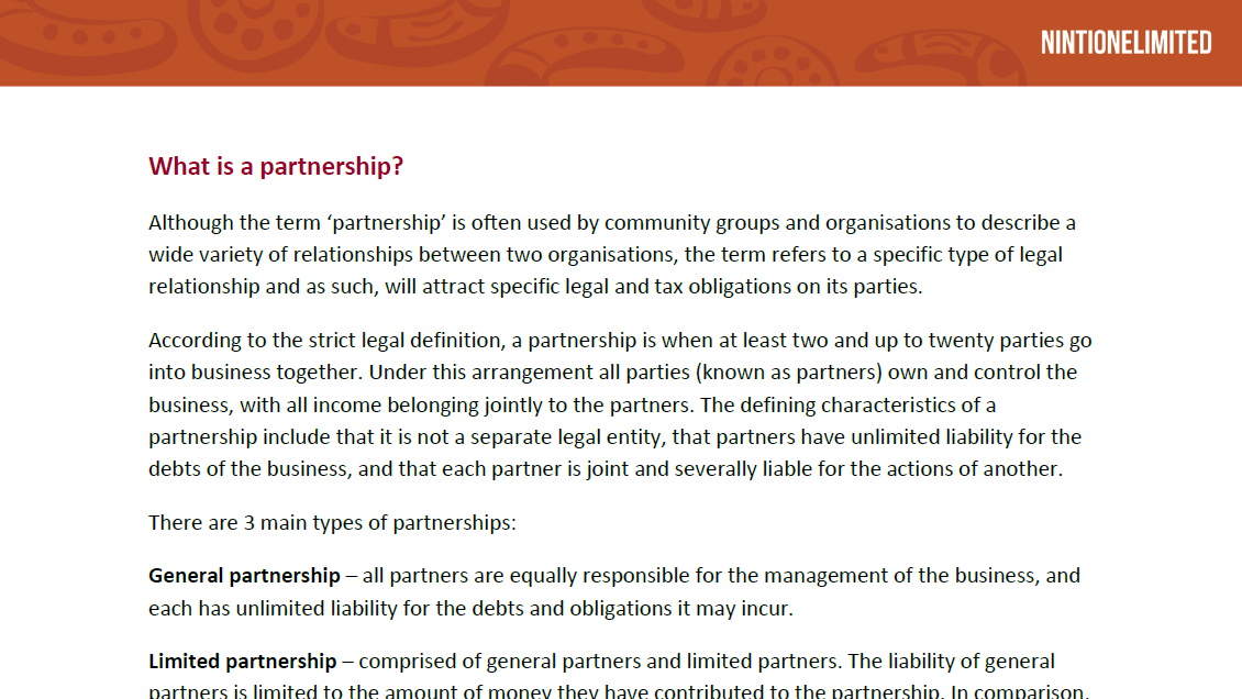 This written resource provides an overview of what to consider when establishing a Partnership.